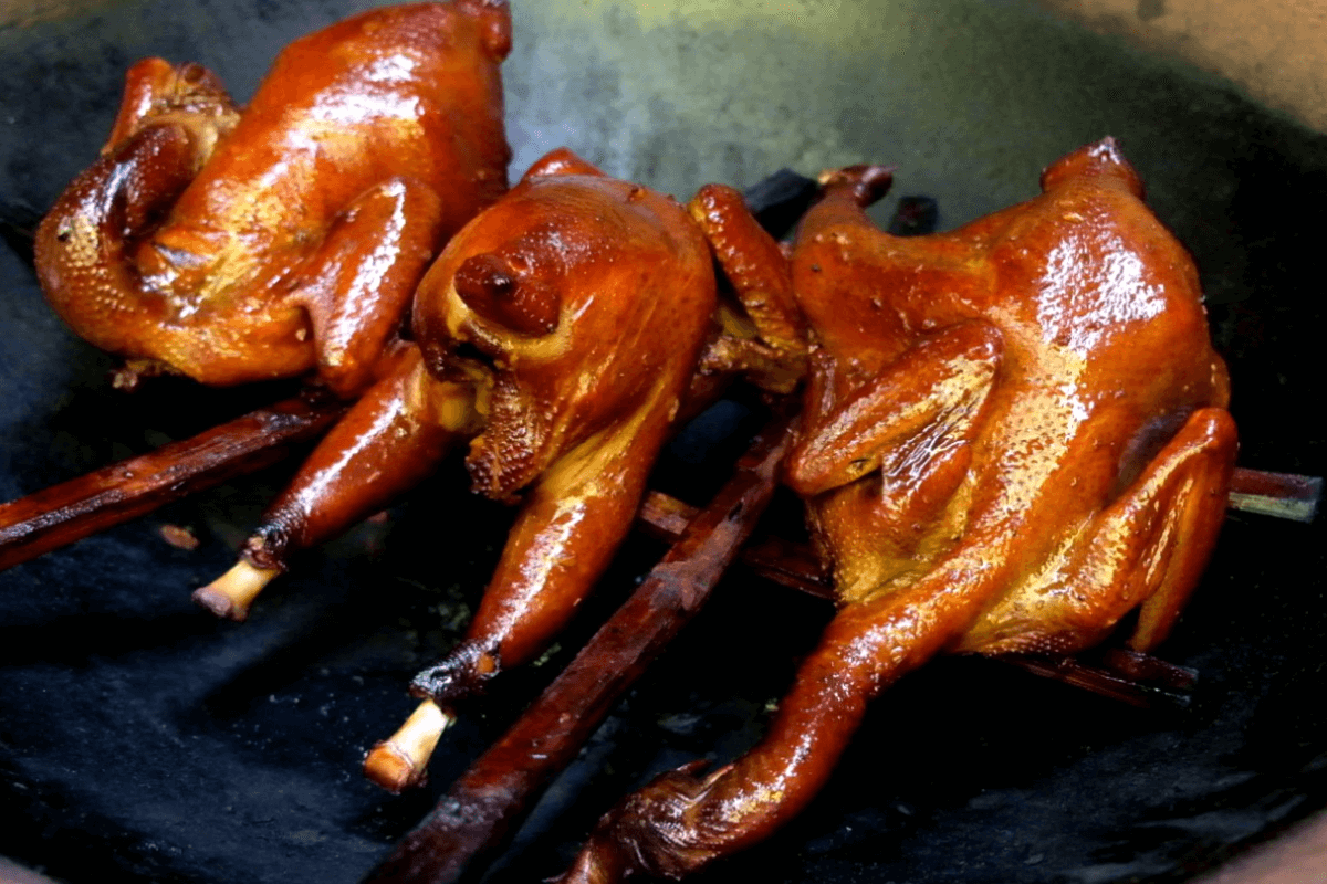藤橋熏雞是溫州鹿城區(qū)的傳統(tǒng)美食。在柴木與紅糖的熏制下,融合橘皮的獨特香氣,成就其鮮美嫩滑、風味獨特的口感,令人回味無窮。