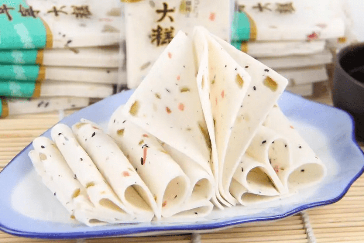 阜寧大糕又名玉帶糕,產(chǎn)于中國散文之鄉(xiāng)阜寧縣,糕片白如雪,柔如云,甜如蜜,薄如紙,單片可點(diǎn)燃,入口香甜。