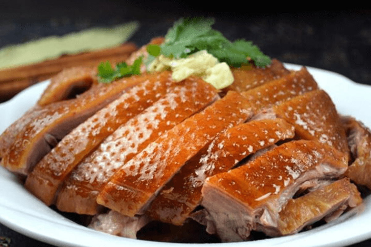 蕪湖無(wú)為板鴨也稱為無(wú)為熏鴨,以巢湖麻鴨為原料,先熏后鹵制作而成。成品鴨金黃油亮,肉質(zhì)鮮嫩,兼具北京烤鴨的芳香和南京板鴨的鮮嫩。