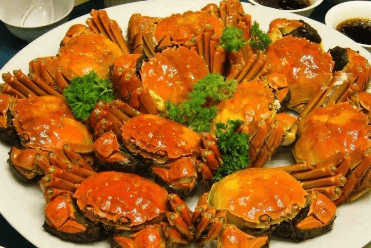 石臼湖螃蟹是當(dāng)涂縣特產(chǎn),突出特點(diǎn)是金腳紅毛、體大肥美,每只小則三四兩,大則六七兩,時(shí)鮮而甘厚,肉嫩而不散。
